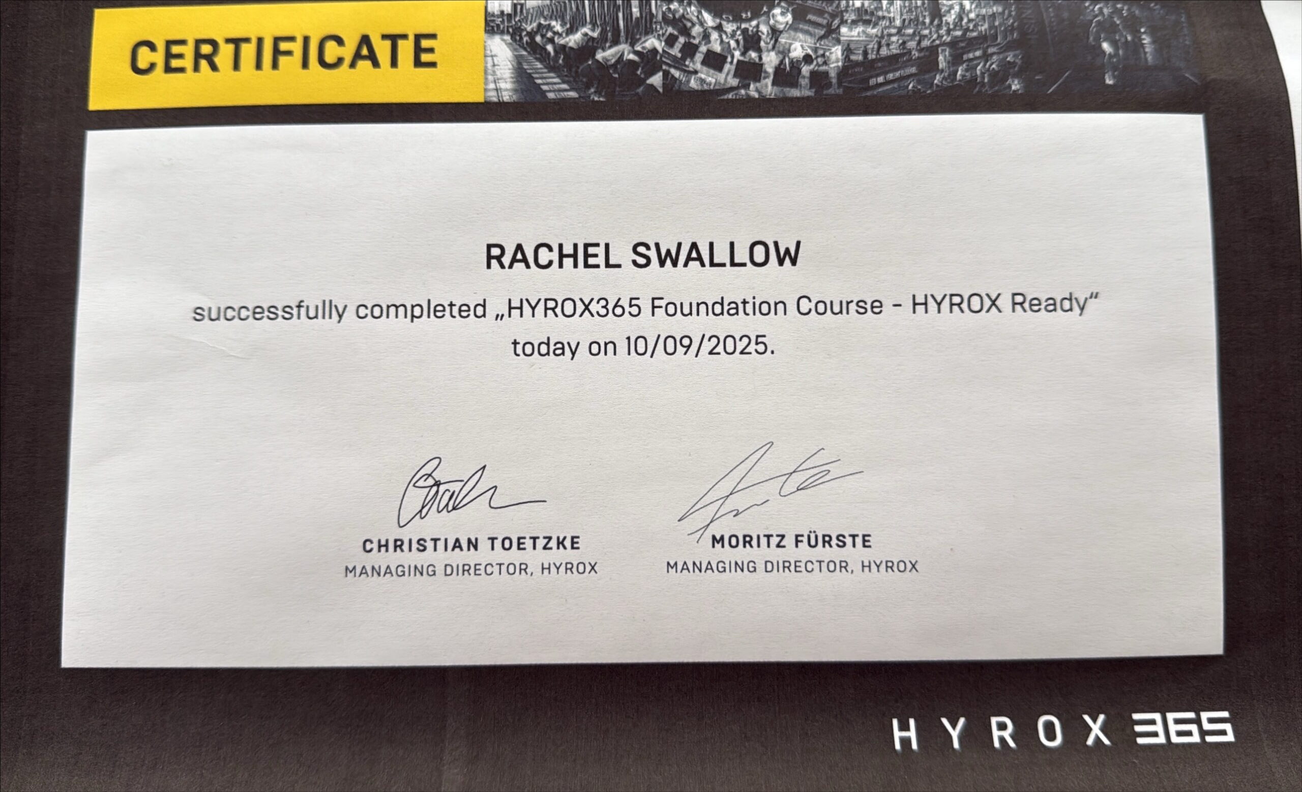 Achieved a certification in HYROX 365 foundation course 10/9/25